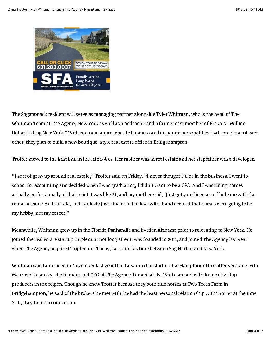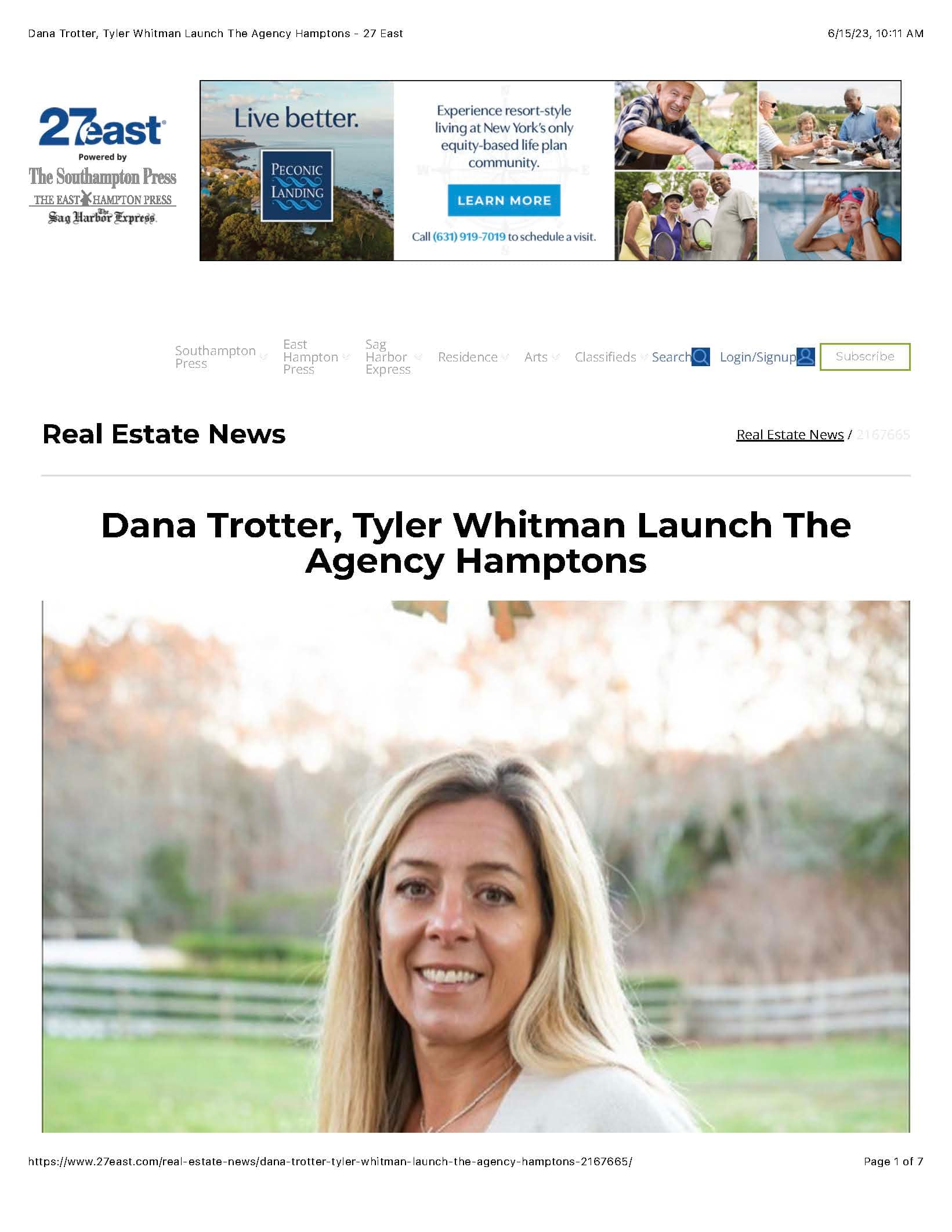 Dana Trotter, Tyler Whitman Launch The Agency Hamptons