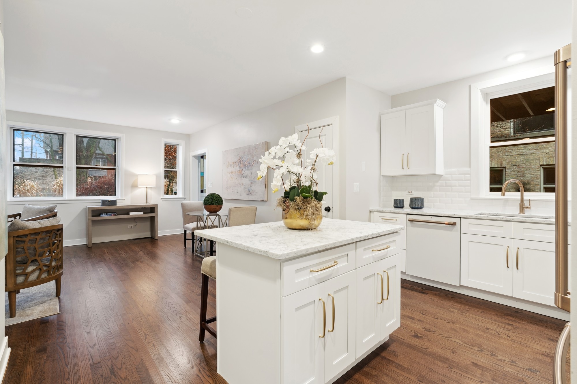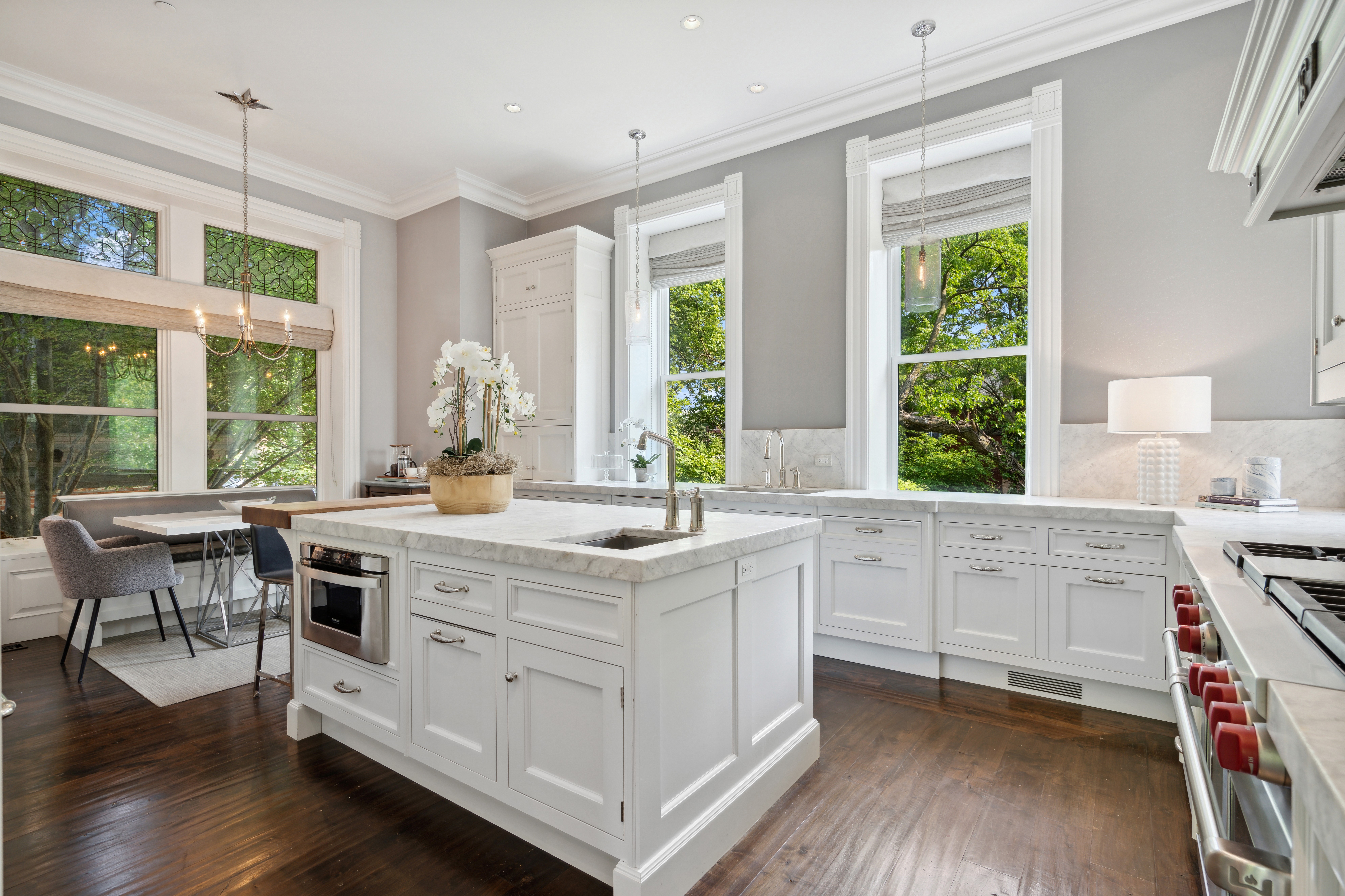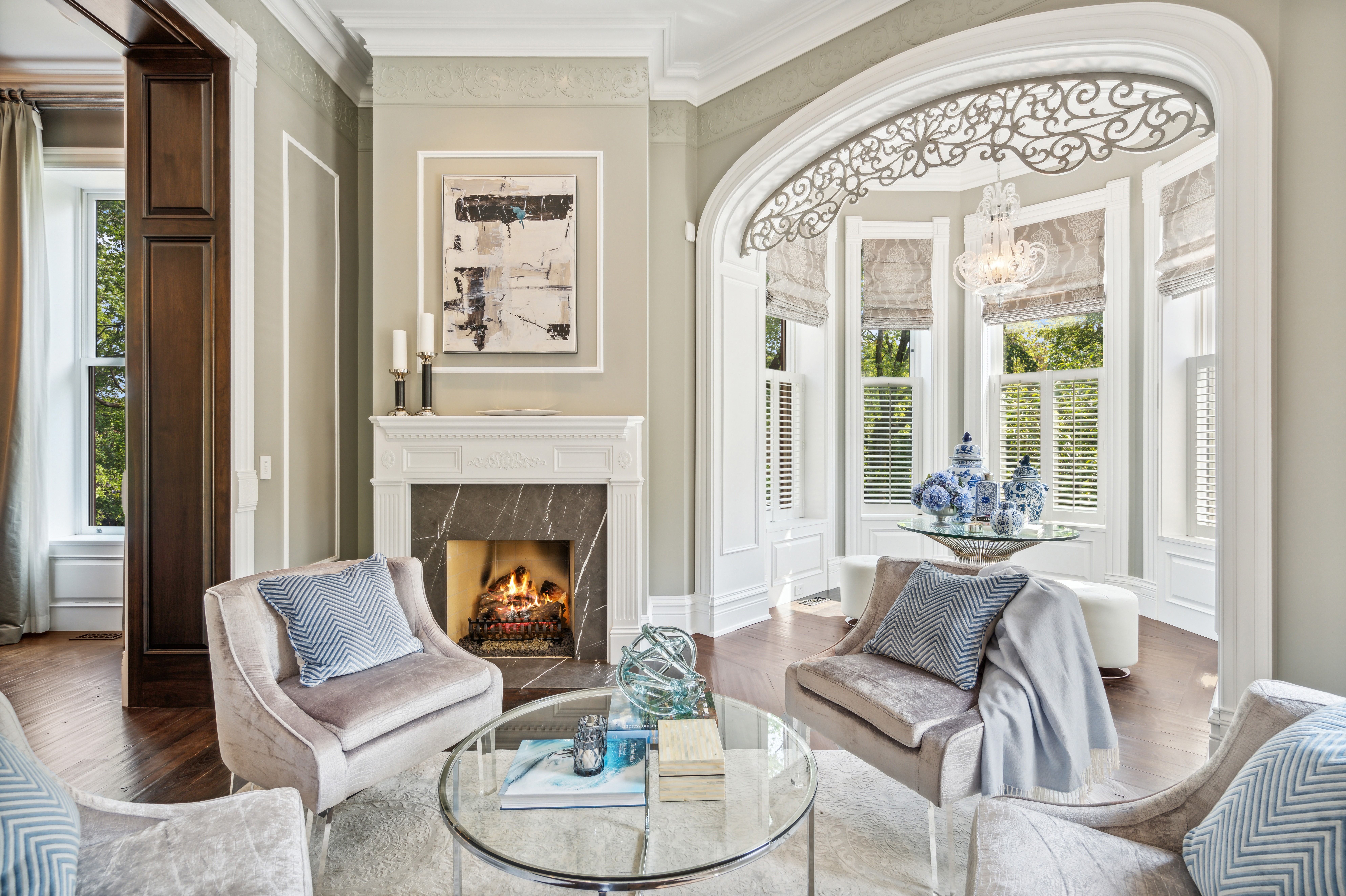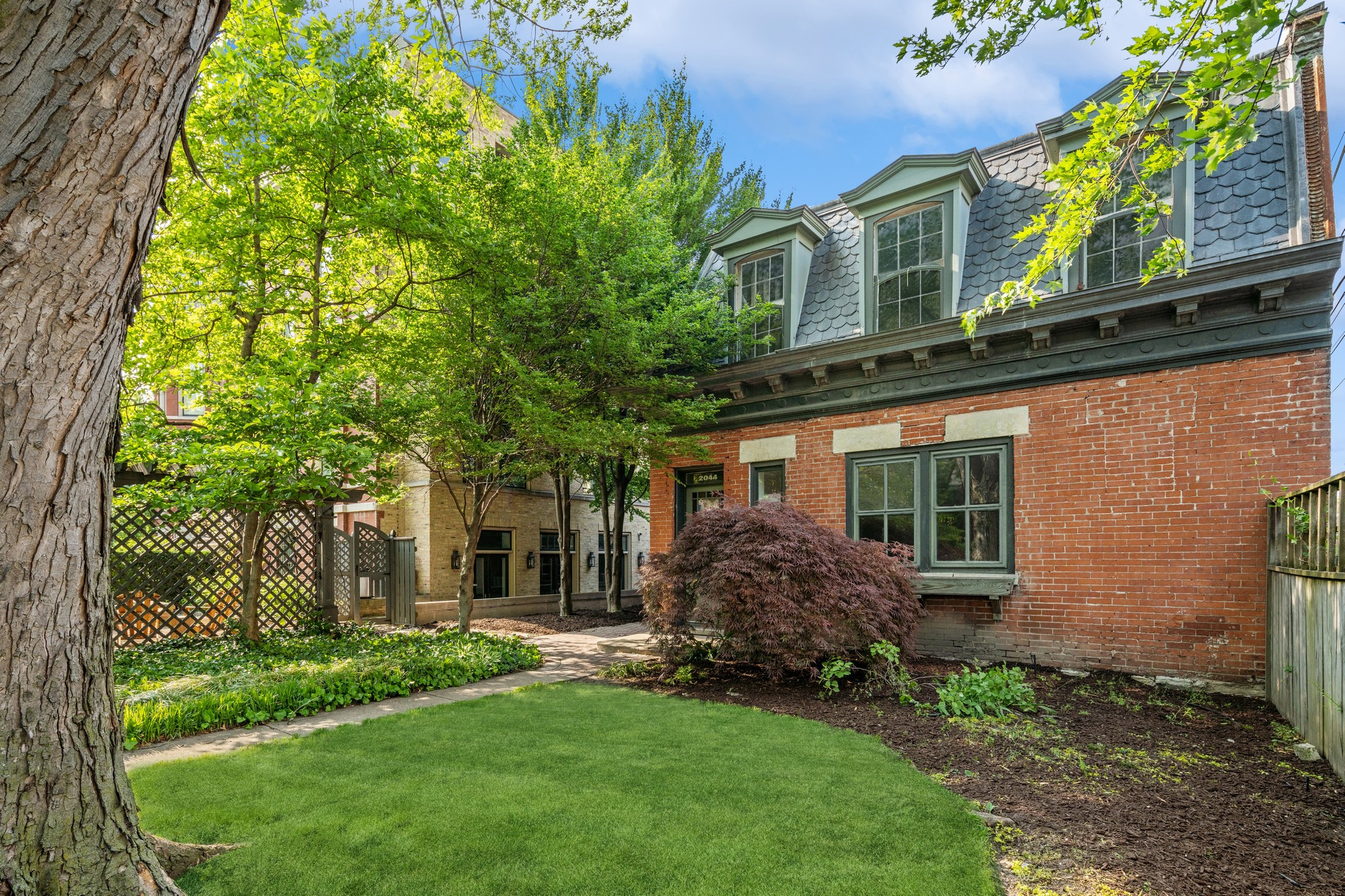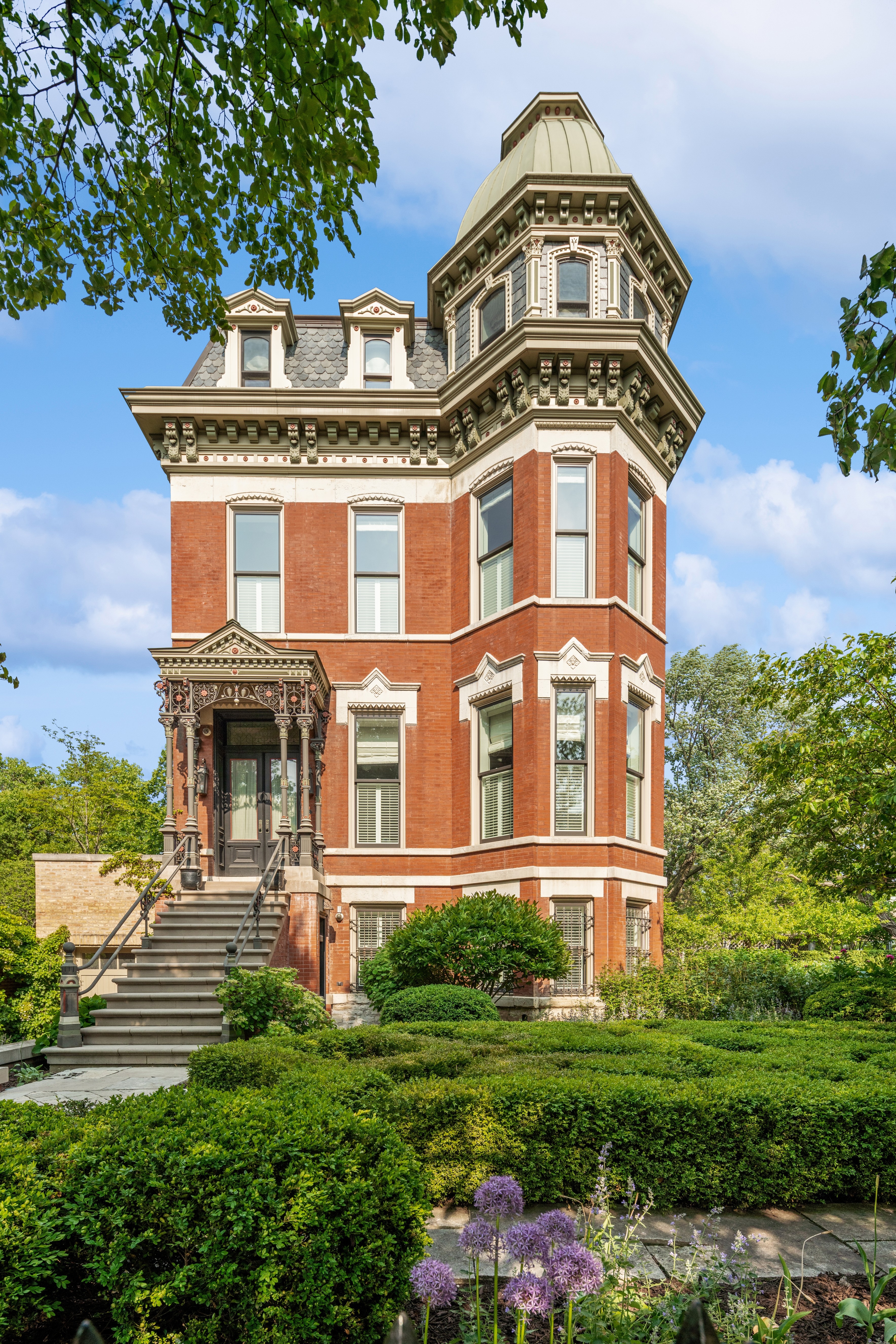 A sophisticated presence, landmark status, architectural integrity, and an unprecedented outdoor footprint for Wicker Park, 1407 N. Hoyne Ave. is a one-of-a-kind opportunity for the homeowner who wants an expansive city estate with pedigree and a modern program. Originally built for beer baron John H. Rapp in 1886, this 8250 SqFt-square-foot, 5+ bed/5.5 bath single-family home underwent a 2-plus-year renovation and restoration by Rugo Raff Architects. The current owner acquired and reunited the original 2000 square foot coach house with this lovingly restored home which is now included in this offering. Preserving elements of its Victorian charm while optimizing sightlines and integrating first-class finishes was paramount. This special home's unheard of 98' x 150' lot - a combined oversized 4-5 city lots! - affords multiple green spaces, including a deep front yard with mature landscaping, a side yard with raised garden beds and a European-style pergola, and a meticulously manicured backyard. Inside, an elegant entry plus an oval-shaped entry hall link to a lovely living room with an abundance of natural light, a traditional turret, and a wood-burning fireplace, and a formal dining room just beyond with hand-scraped walnut floors. The custom chef's kitchen stuns with O'Brien Harris cabinetry, white quartzite countertops, professional-grade Wolf/Sub-Zero appliances, an herb garden, a full butler's pantry, a breakfast dining space with banquette seating, and a built-in desk. The main level also features an intimate family room with built-in walnut cabinetry and a chic beverage center, and two beautiful limestone terraces accessed via French doors: a 12' x 23' west terrace for open-air entertaining and a 12' x 17' side terrace that's perfectly appointed for large-scale alfresco dining with an outdoor kitchen and a built-in grill. A striking example of this home's flawless interior architecture is the centrally located, curving suspended staircase. The second level is devoted to two secondary bedrooms (one with custom bunk beds), the first of two laundry rooms, and an impressively spacious primary suite with a sitting area, a custom dressing room, a walk-in closet, and a marble-clad ensuite bath with two vanities, a soaking tub, and a deluxe shower. The third floor presents two designer offices--a handsome den with knotty alder wood floors and a gas fireplace, a cozy den with a wet bar, an exercise room, and yet another polished guest bedroom. But there's more... This truly magnificent home also comes complete with a fully finished garden level with a massive playroom that opens onto a basement terrace, a wine room, a kitchenette, another large guest bedroom with den perfect for related living, a second laundry room, a walk-in storage room, and a custom mudroom that connects to a two-car garage. Plus, the property features a standalone coach house - a wonderful blank slate that can be transformed into a guest cottage, a recreation or art space, offices, or added parking if needed. Additional callout details and amenities include restored original doors and hardware, custom woodwork and trim throughout, designer lighting and wallcoverings throughout, four total fireplaces, 97 Marvin windows, geothermal heating and cooling plus radiant heat in the lower level playroom, a Lutron lighting system, self-irrigating planters on both terraces, and an excess of custom interior storage. Walking distance to Wicker Park proper and the world-class shopping and dining that extends from the neighborhood's famed Six Corners, 1407 N. Hoyne Ave. is a one-of-a-kind home with uncompromising design and comforts.