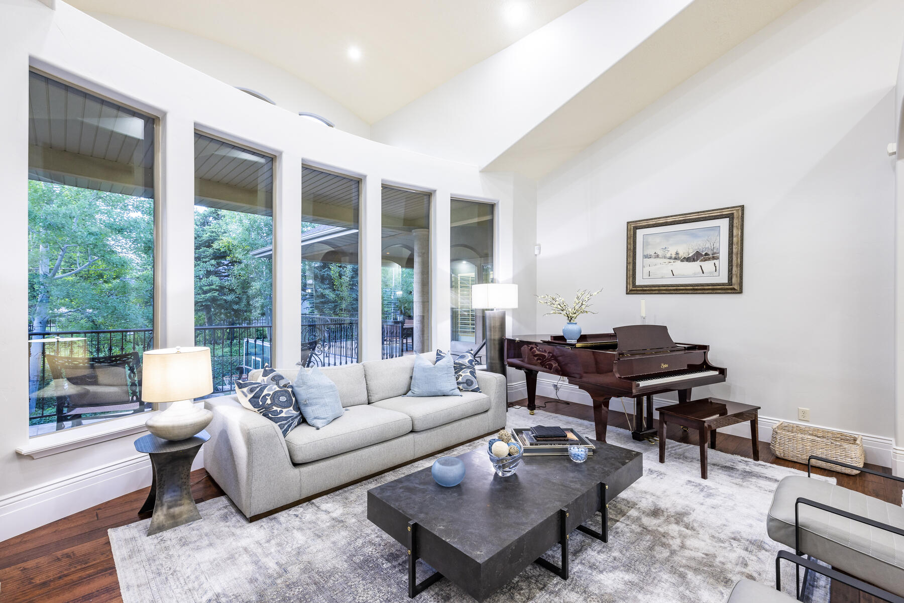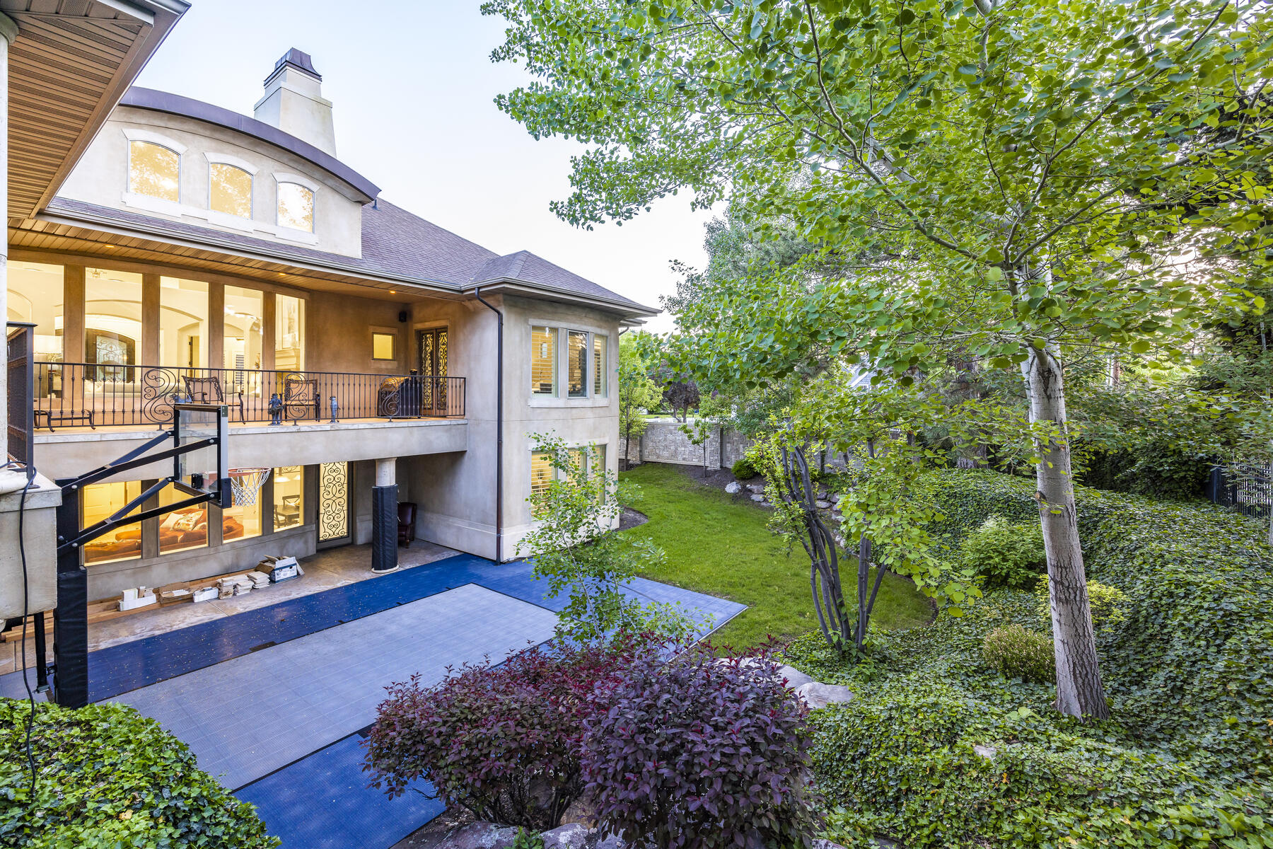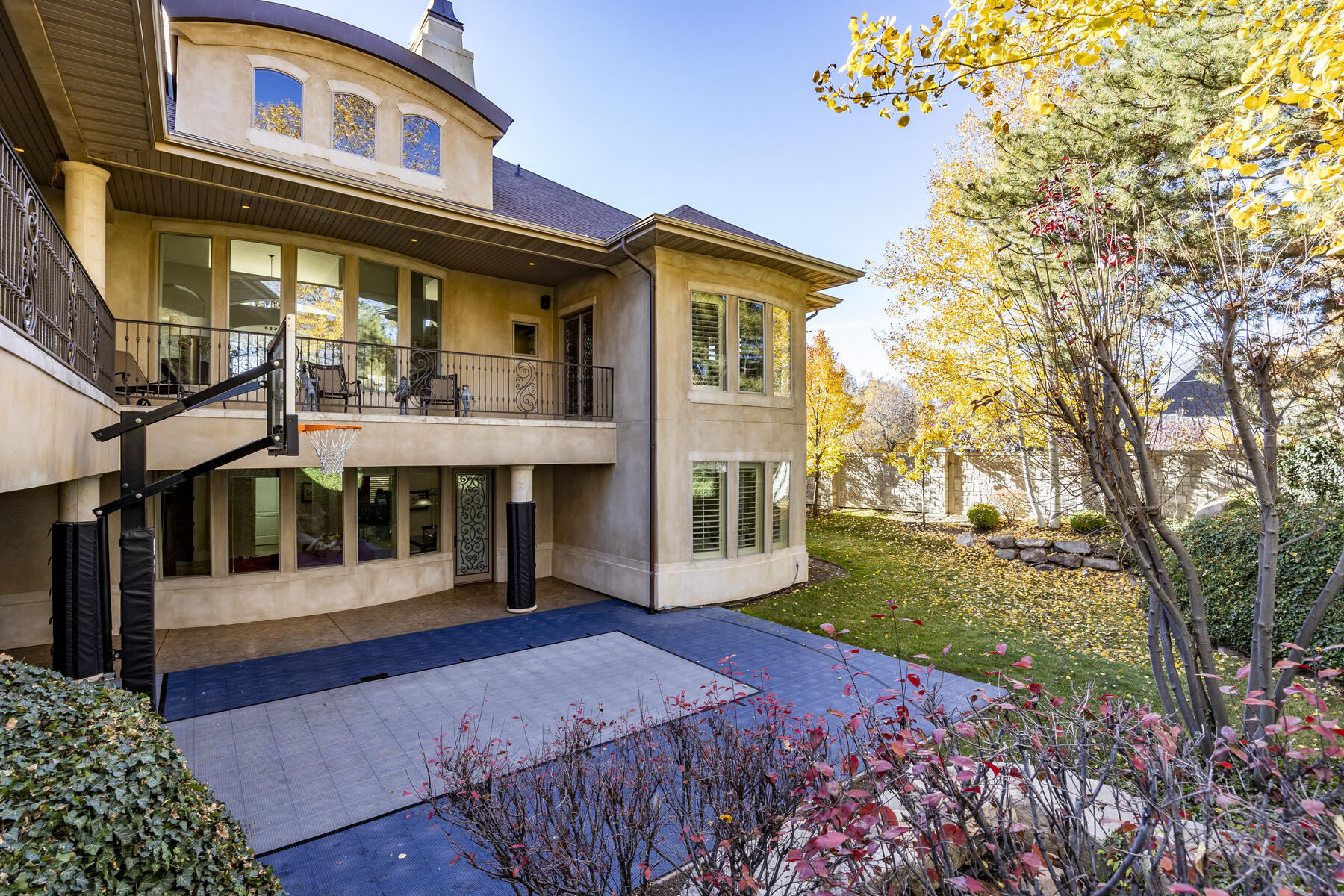 This breathtaking custom-built home is nestled in a prime location on a private lane across from the prestigious Salt Lake Country Club and golf course. This remarkable residence boasts stunning features, including a well-planned master wing on the main level, a custom marble dining table, both a secondary kitchen and living room in the basement, and a full-sized sports court that can be modified to fit a variety of outdoor sports like basketball or pickleball. The master wing offers main level living at its finest with a private sitting area, fireplace, large ensuite bathroom and a generous master walk-in closet. The open layout within the main level makes it the perfect space for hosting gatherings of any size, offering a gorgeous open floor plan where each room seems to flow into the next. The updated kitchen immediately connects to both informal and formal dining spaces as well as a great room that has another one of the home's beautiful fireplaces. The main level truly comes with all that one may need, but one of the most stand out features of the property is that there is another kitchen, living room, den and bedrooms down the dream worthy spiral staircase. Both attention to detail and superior craftsmanship are evident throughout the home, with luxurious finishes elevating the overall aesthetic and giving the space a European feel that is sure to impress. Should the awe-inspiring grounds and home leave something to be desired, the surrounding area offers immediate access to the city, the mountains and various entertainment opportunities throughout, while also offering the benefit of living in a private neighborhood. Just moments from the Salt Lake Country Club, Sugarhouse Park, the mountains, Downtown and more, the area truly has something for everyone. The combination of elegance, functionality, and location make this home a once-in-a-lifetime opportunity for luxury.