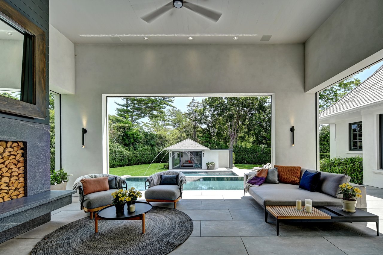 Spanning approximately 8,000 square feet, the residence presents a refined dialogue between classic Hamptons craftsmanship and modern architectural expression. Traditional detailing is executed with precision, while contemporary elements introduce scale, light, and proportion throughout.