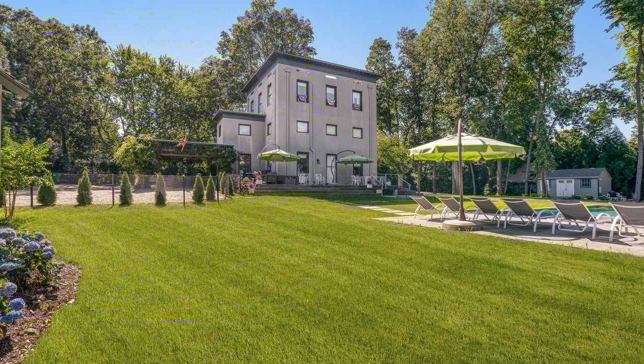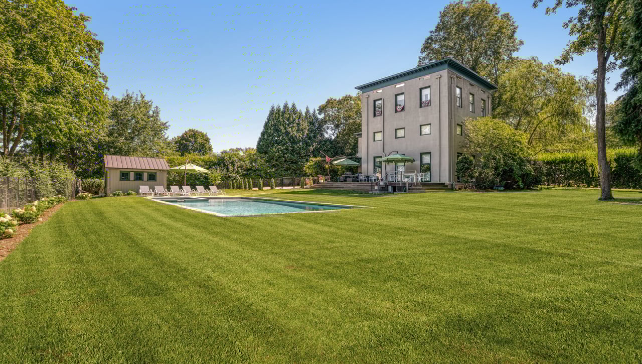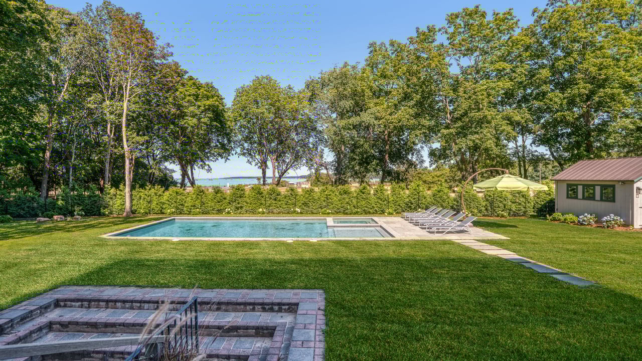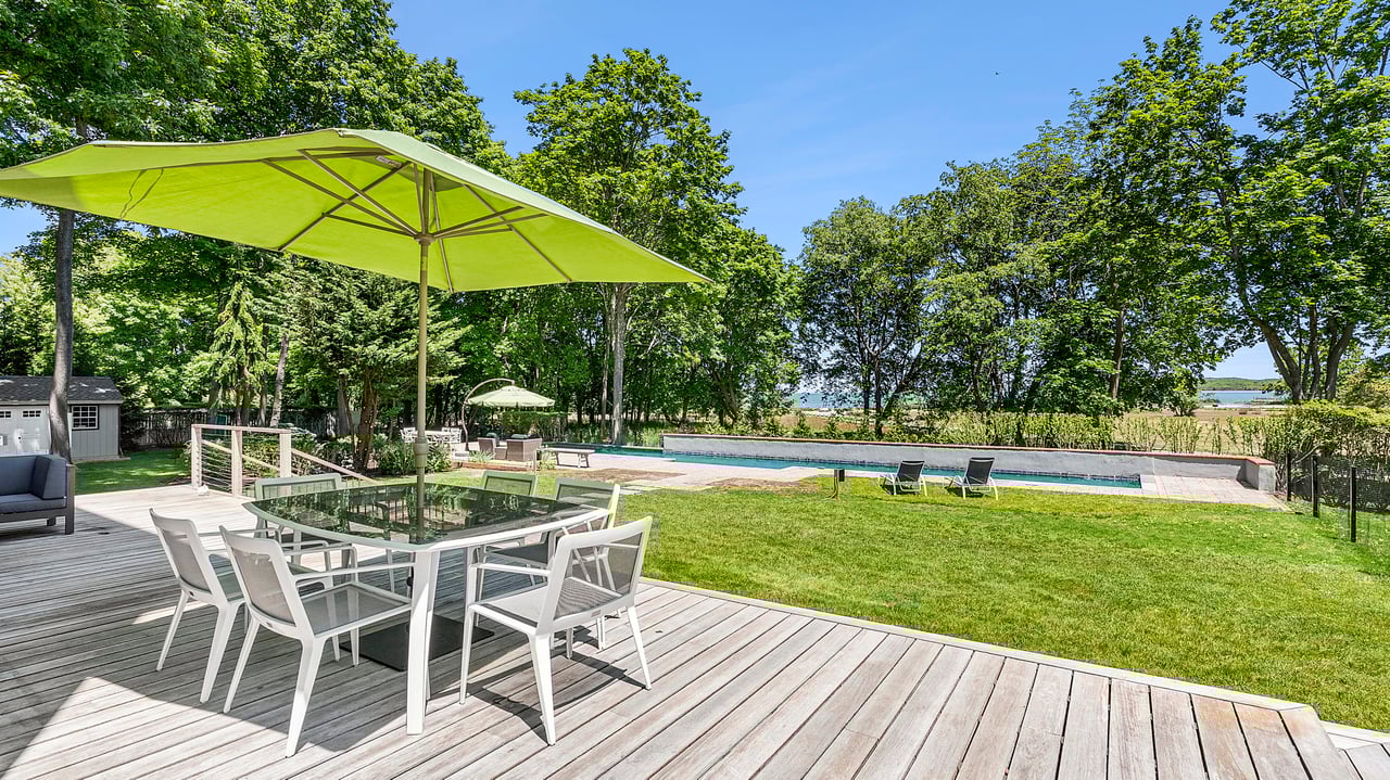 Overlooking Havens Beach with a 450 foot path to Sag Harbor Bay and pristine, sandy beaches, this 4 bedroom Sag Harbor Village beach house has bright, voluminous interiors with French doors to the expansive al fresco dining deck and waterside, heated, gunite pool. With stunning views of the beach, bay, and boats beyond, floor to ceiling windows and a roof deck frame the lush 0.81 acre grounds, one of the largest parcels in the Village. Convenient to the renown shopping and dining of Main Street Sag Harbor Village, leave the car behind as it's an easy distance to the marina, Sag Harbor Yacht Club, Sag Harbor Marine Park, the farmer's market, the dog park, Sag Harbor Kitchen, Dopo La Spiaggia, and Carissa's, to name a few. The spacious great room, with views of the pool and bay beyond, contains a dining area, living room with fireplace, and French doors to the al fresco dining deck for exceptional indoor outdoor flow. The gourmet kitchen is outfitted with top of the line appliances. The three well appointed bedrooms have en suite bathrooms adorned with fixtures by Waterworks. The finished lower level houses a custom, 8-seat projection theatre, gym, wine room, and wet bar. Tesla Charging Station.