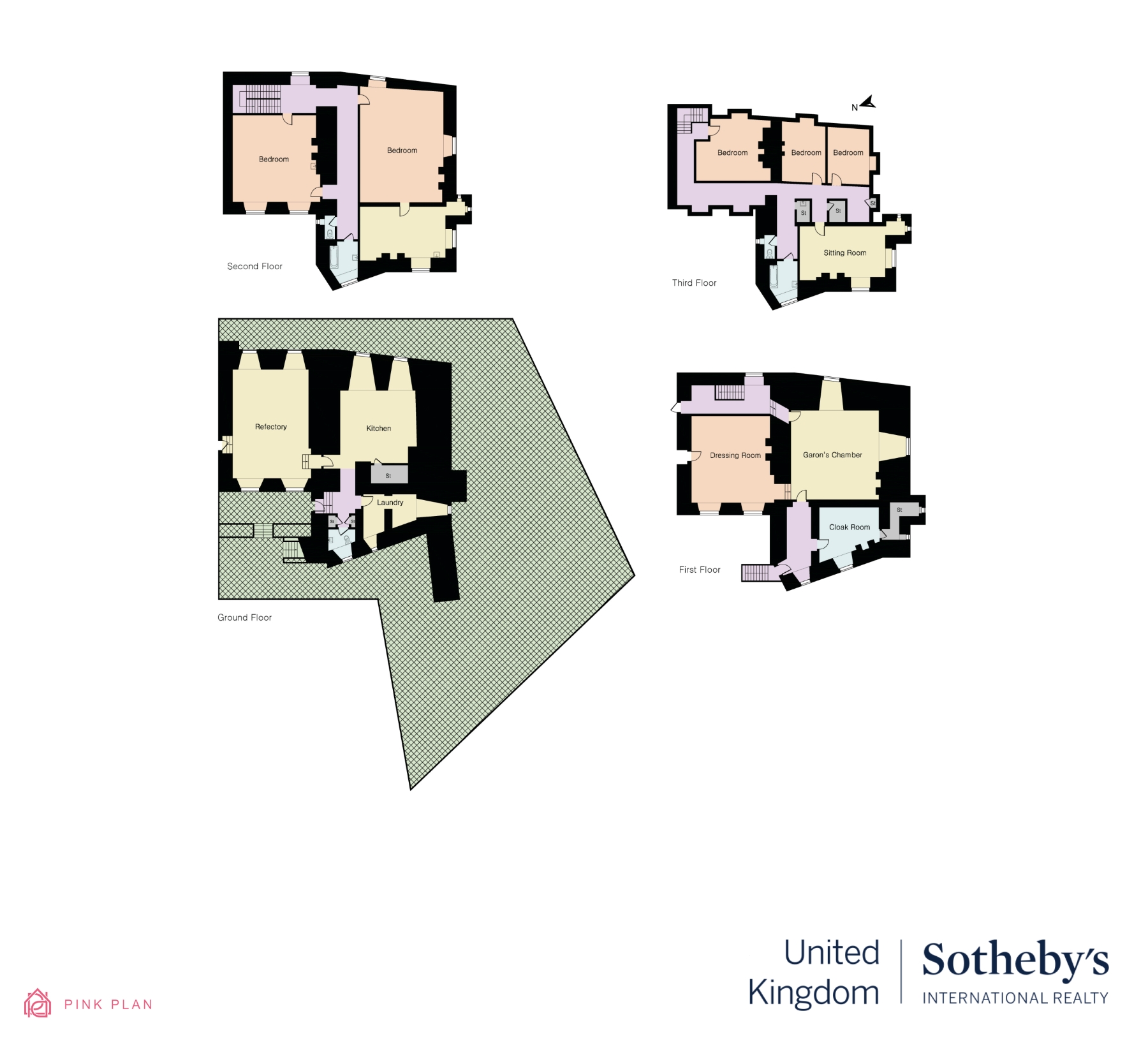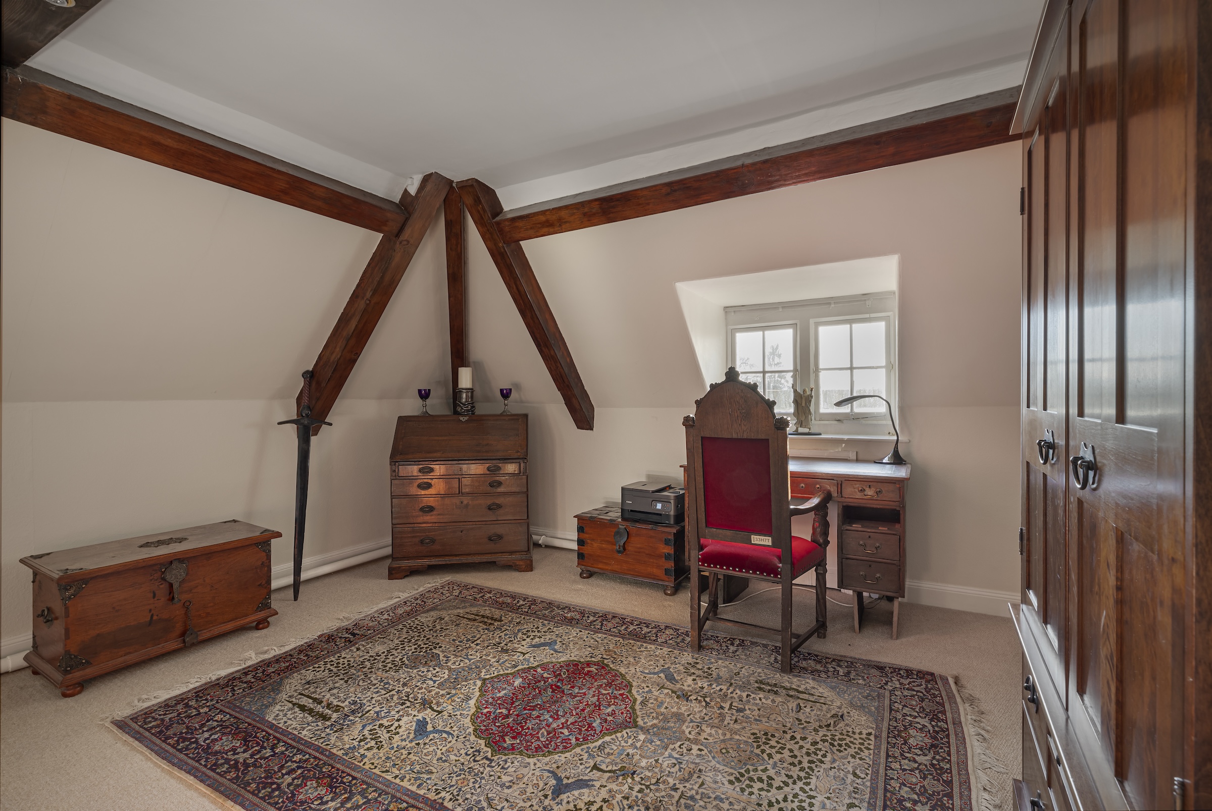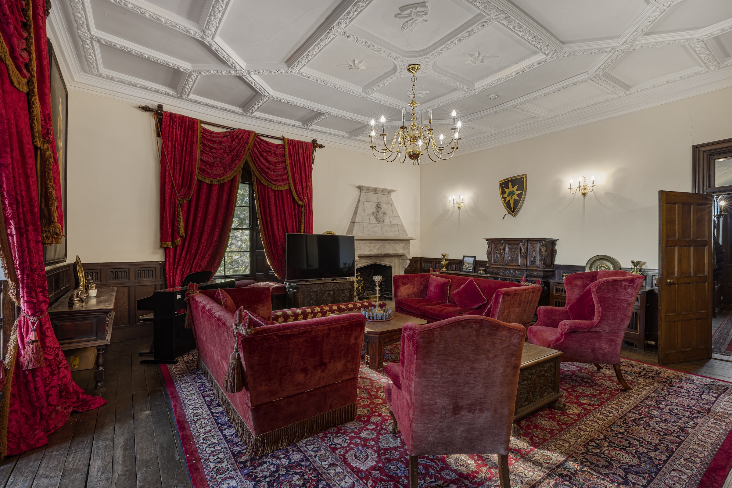 Ascending to the first floor, a utility room with a medieval garderobe complements a luxurious sitting room, known as Lady Anne's reading room since its addition in 1454. Nearby, a private dining room is perfect for entertaining.