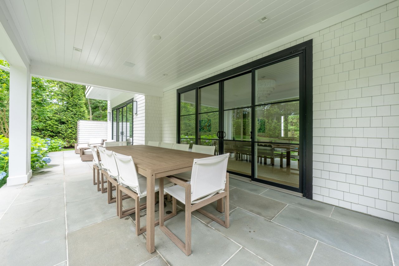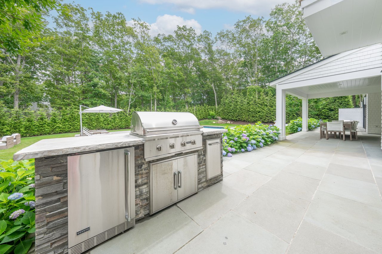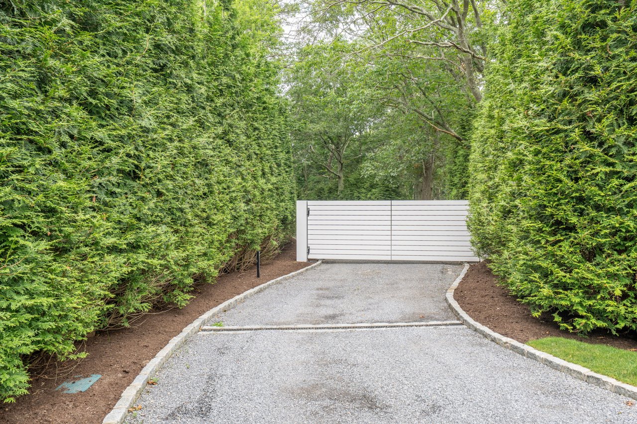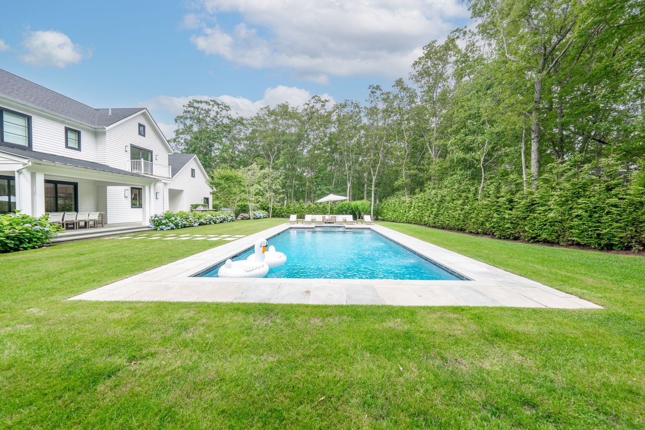 Minutes from the bustle and charm of Sag Harbor Village, set on an exceedingly private and gated acre-plus flag lot with mature hedges, this immaculate 7 bedroom, 6500 square foot traditional checks all the boxes of a quintessential Hamptons summer home with a heated, gunite pool and spa, exceptional outdoor spaces, lined with hydrangeas, built-in BBQ grill kitchen, and an expansive finished lower level. Through the automated gate, a tree-lined approach leads to the handsome, white, shingled traditional with an attached 2-car garage. Adorned with shiplap, the bright, full height foyer creates a dramatic first impression. With lovely indoor and outdoor flow, the open concept floor plan offers a gourmet eat-in kitchen with an adjacent living room with fireplace and sitting area, with two sets of French door leading to the covered porch overlooking the pool area and rear grounds. A formal dining room with passthrough wet bar and wine storage serves the kitchen. A guest bedroom suite, pool full bath, foyer powder bath, expansive mud room, laundry room, and two-car garage completes the main level. Upstairs has a generous primary suite with luxurious bath including a freestanding tub and floating dual vanity. Three spacious en suite guest bedrooms supplement. The finished lower level features a gym, recreation area, and two bedrooms. Unique opportunity to own a turnkey home of excellent quality on a private acre-plus flag lot with a heated, gunite pool and spa and outdoor spaces fit for summer in the Hamptons.