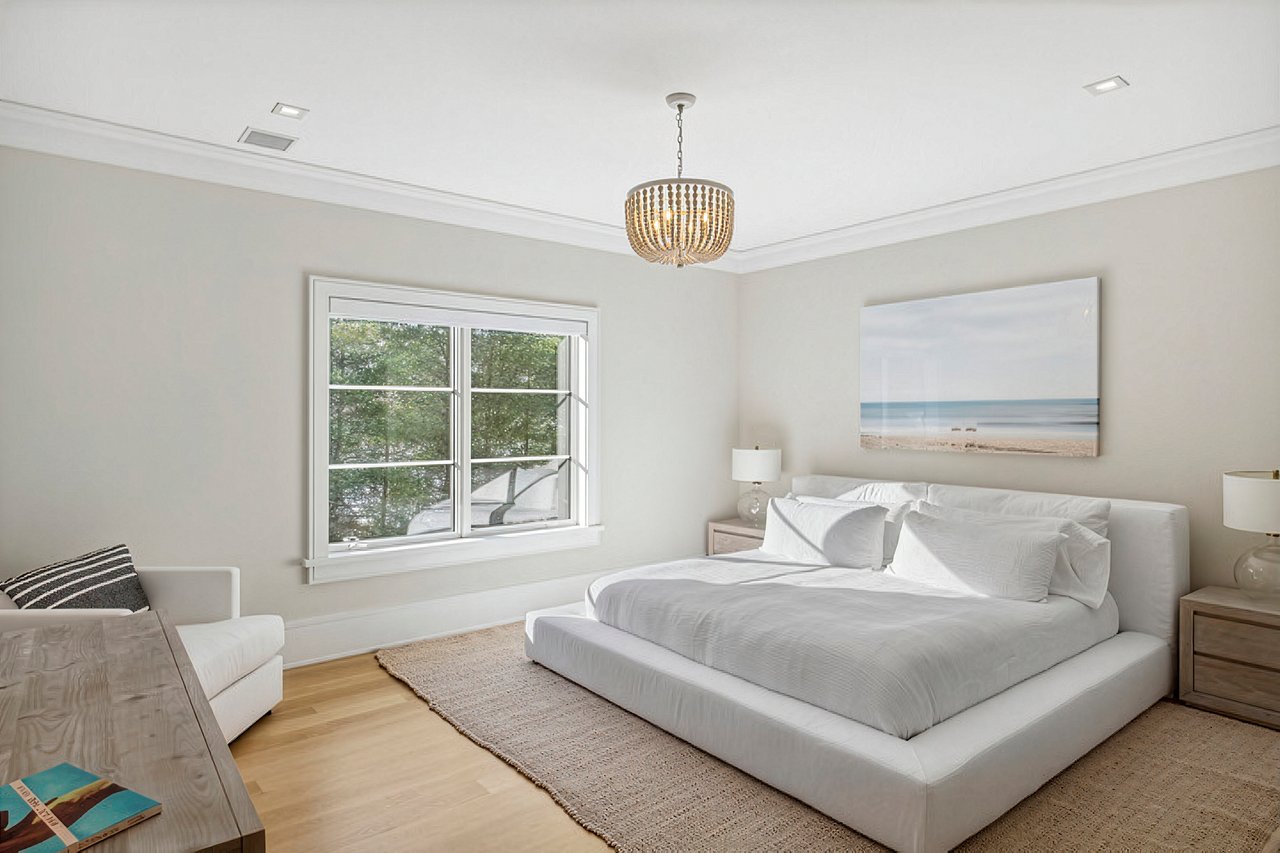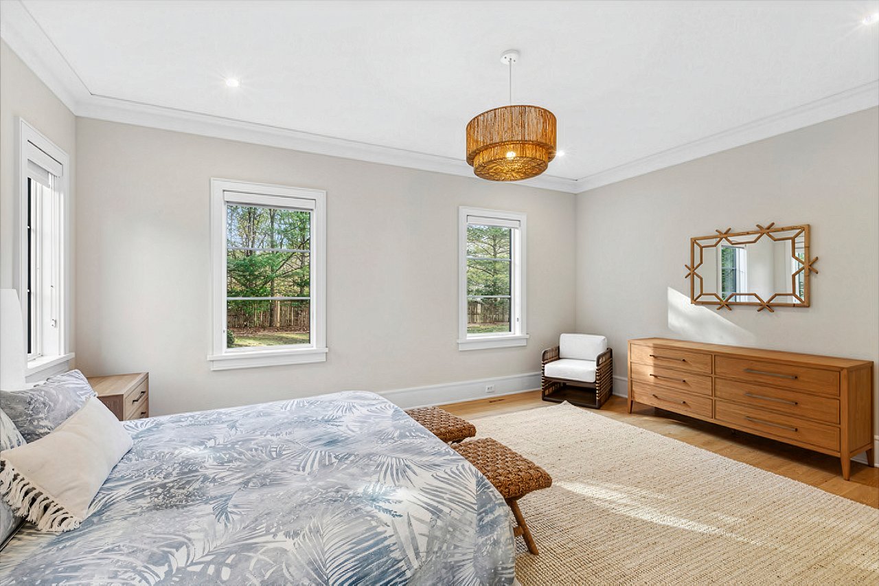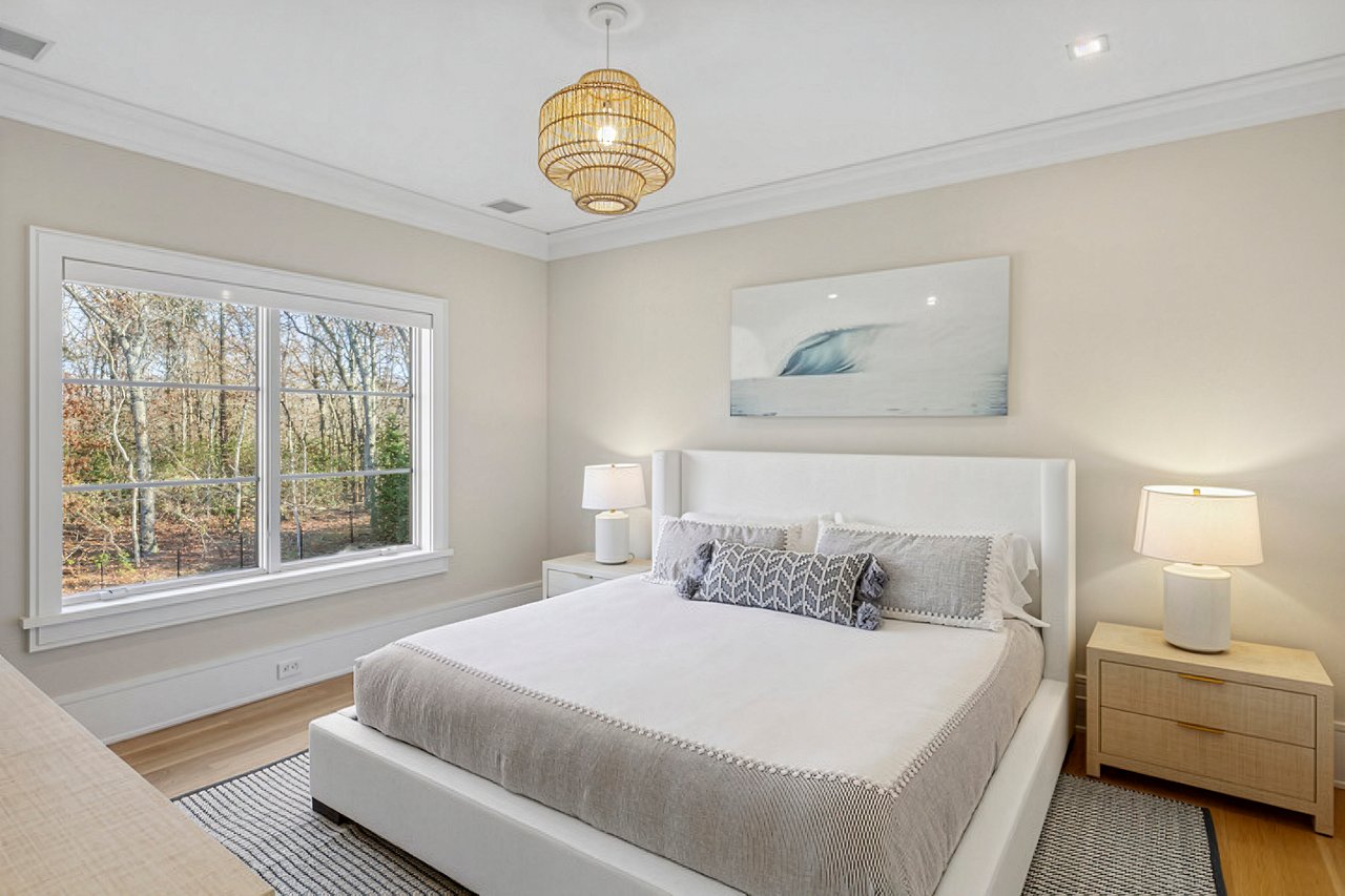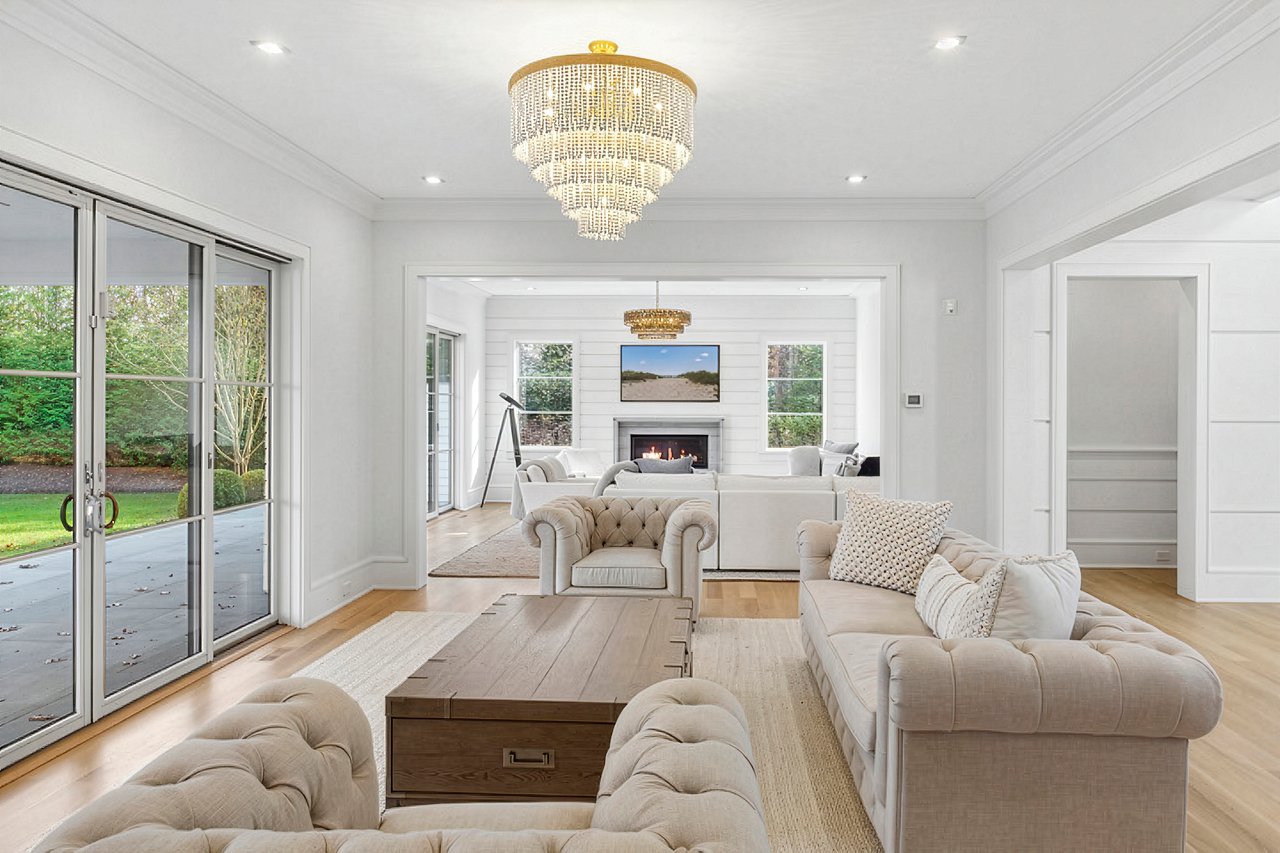 Minutes from the bustle and charm of Sag Harbor Village, set on an exceedingly private and gated acre-plus flag lot with mature hedges, this immaculate 7 bedroom, 6500 square foot traditional checks all the boxes of a quintessential Hamptons summer home with a heated, gunite pool and spa, exceptional outdoor spaces, lined with hydrangeas, built-in BBQ grill kitchen, and an expansive finished lower level. Through the automated gate, a tree-lined approach leads to the handsome, white, shingled traditional with an attached 2-car garage. Adorned with shiplap, the bright, full height foyer creates a dramatic first impression. With lovely indoor and outdoor flow, the open concept floor plan offers a gourmet eat-in kitchen with an adjacent living room with fireplace and sitting area, with two sets of French door leading to the covered porch overlooking the pool area and rear grounds. A formal dining room with passthrough wet bar and wine storage serves the kitchen. A guest bedroom suite, pool full bath, foyer powder bath, expansive mud room, laundry room, and two-car garage completes the main level. Upstairs has a generous primary suite with luxurious bath including a freestanding tub and floating dual vanity. Three spacious en suite guest bedrooms supplement. The finished lower level features a gym, recreation area, and two bedrooms. Unique opportunity to own a turnkey home of excellent quality on a private acre-plus flag lot with a heated, gunite pool and spa and outdoor spaces fit for summer in the Hamptons.