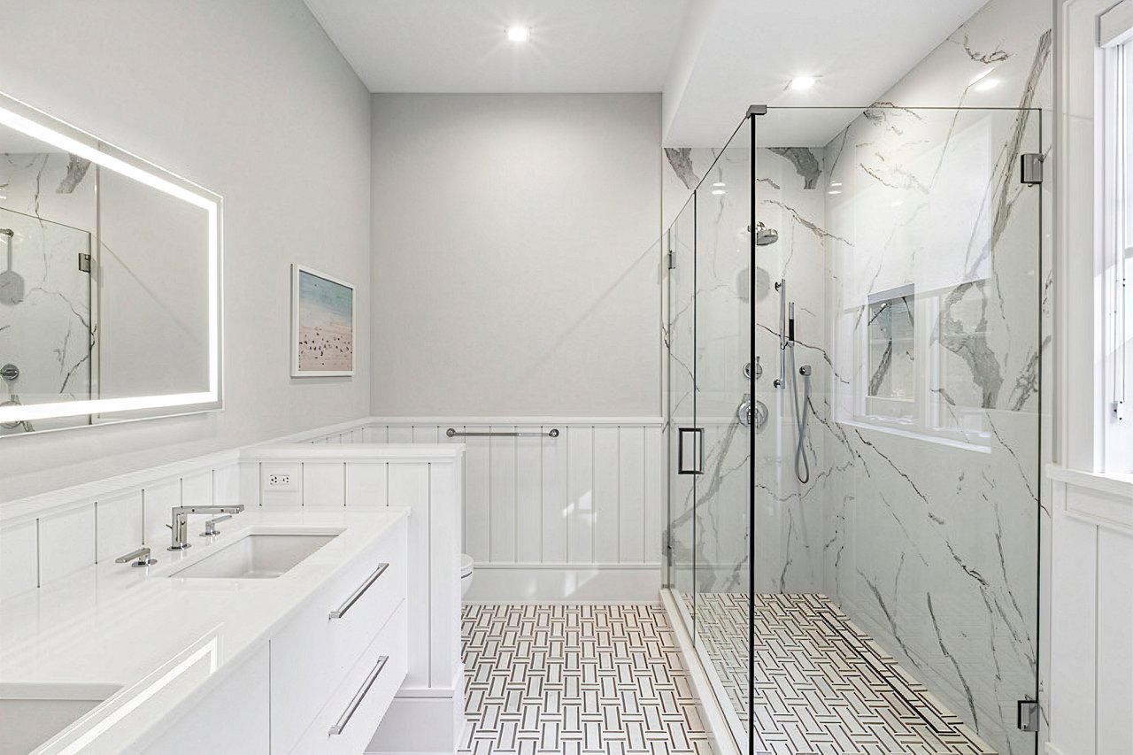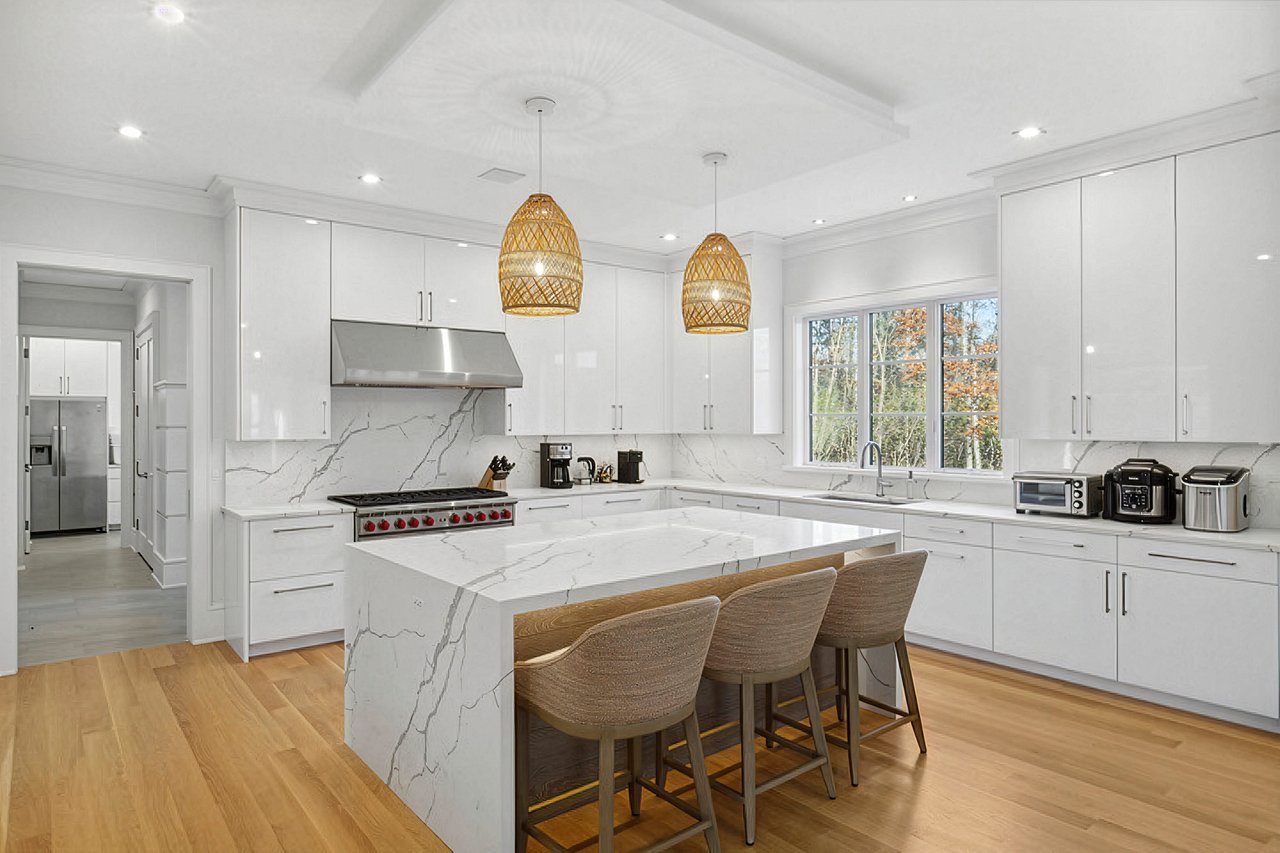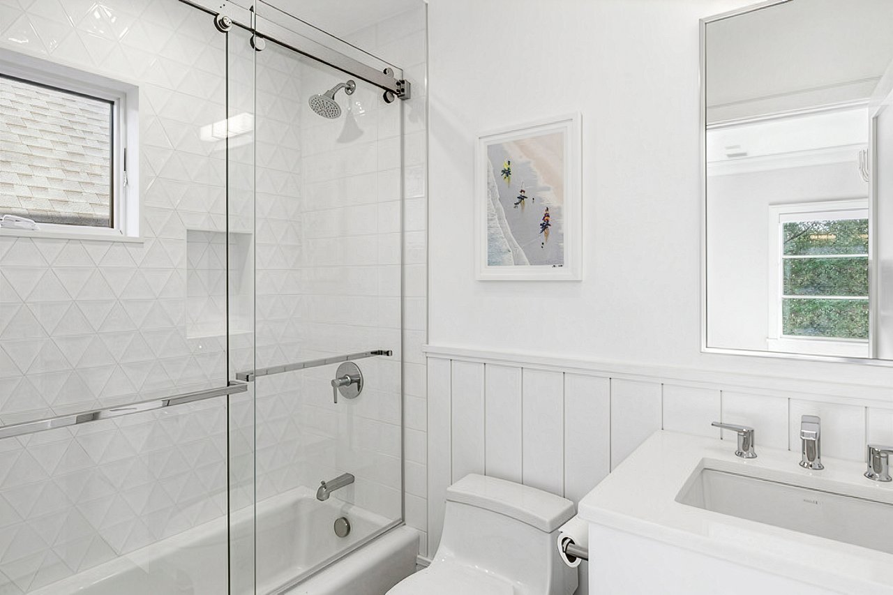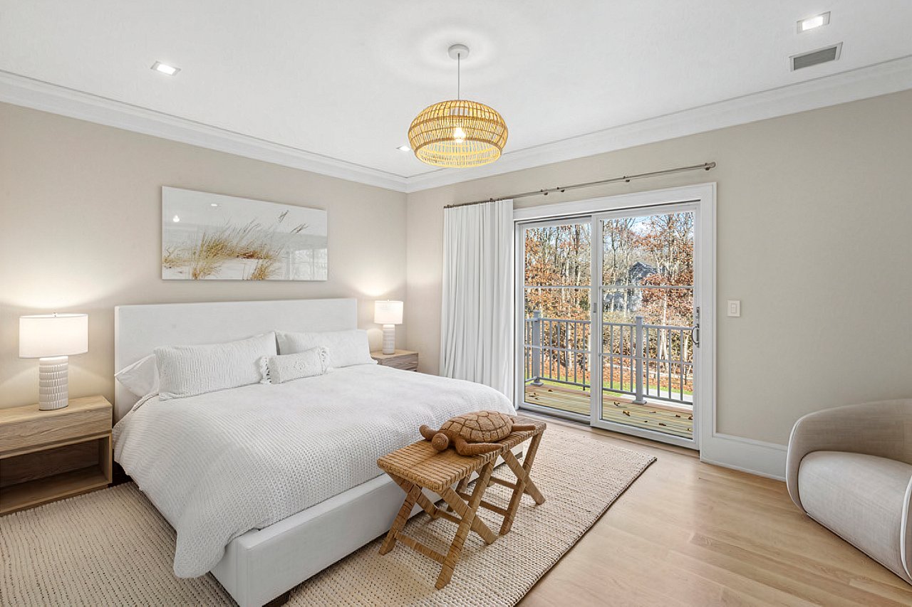 Minutes from the bustle and charm of Sag Harbor Village, set on an exceedingly private and gated acre-plus flag lot with mature hedges, this immaculate 7 bedroom, 6500 square foot traditional checks all the boxes of a quintessential Hamptons summer home with a heated, gunite pool and spa, exceptional outdoor spaces, lined with hydrangeas, built-in BBQ grill kitchen, and an expansive finished lower level. Through the automated gate, a tree-lined approach leads to the handsome, white, shingled traditional with an attached 2-car garage. Adorned with shiplap, the bright, full height foyer creates a dramatic first impression. With lovely indoor and outdoor flow, the open concept floor plan offers a gourmet eat-in kitchen with an adjacent living room with fireplace and sitting area, with two sets of French door leading to the covered porch overlooking the pool area and rear grounds. A formal dining room with passthrough wet bar and wine storage serves the kitchen. A guest bedroom suite, pool full bath, foyer powder bath, expansive mud room, laundry room, and two-car garage completes the main level. Upstairs has a generous primary suite with luxurious bath including a freestanding tub and floating dual vanity. Three spacious en suite guest bedrooms supplement. The finished lower level features a gym, recreation area, and two bedrooms. Unique opportunity to own a turnkey home of excellent quality on a private acre-plus flag lot with a heated, gunite pool and spa and outdoor spaces fit for summer in the Hamptons.
