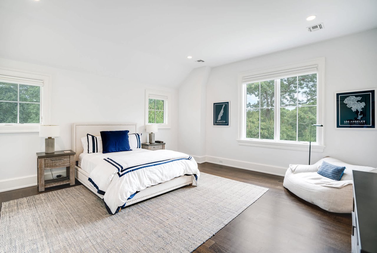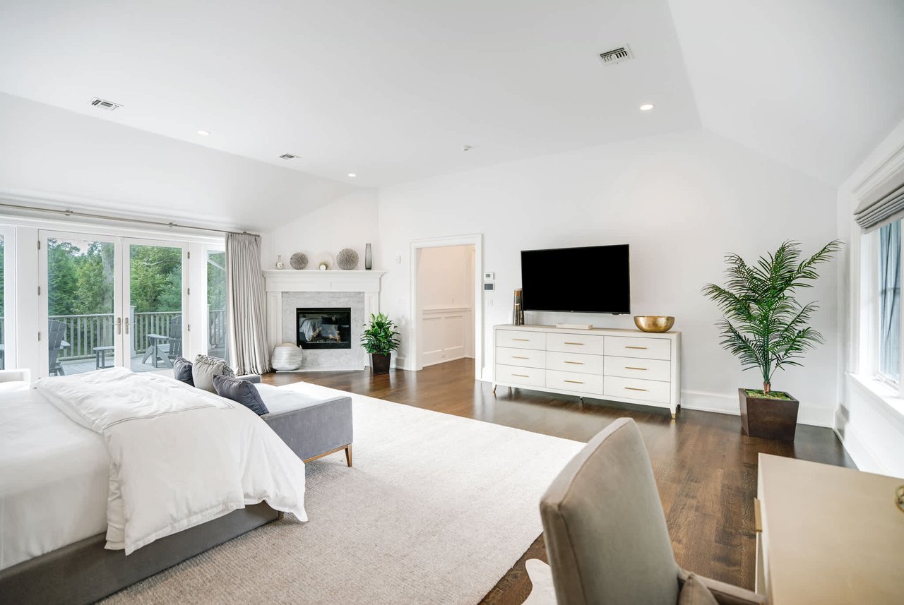 Offering complete privacy in Bridgehampton north, minutes from ocean beaches, equestrian or golf pursuits, and shopping and dining on Main Street, this immaculate 6-bedroom shingled traditional sits on a peacefully secluded acre with a heated, gunite pool and spa, idyllic outdoor space, and a finished lower level with theater. The recently built and meticulously maintained home opens on a paneled entry foyer with soaring ceilings that leads to the open concept great room with living and dining areas off the gourmet eat-in kitchen. A bright, formal sitting room with wet bar opens to the idyllic screened porch. The spacious formal dining room is adjacent to the kitchen. A laundry room and pool bath complete the main level. Upstairs, the expansive primary bedroom has a fireplace, terrace, and luxurious bath. Four excellently appointed en suite bedrooms supplement. The third floor has a recessed balcony to take in the rear grounds. The finished lower level offers a recreation and media area, gym, and bedroom suite. Unique opportunity to rent a beautifully kept and quintessentially Hamptons home for the summer that checks all the boxes.