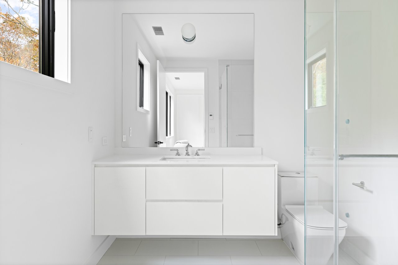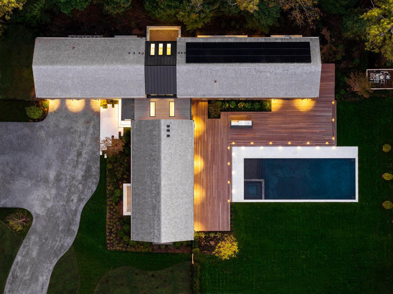 The wired smart home features Maxeon solar panels and eight zones of heating and cooling powered by high-efficiency Bosch heat pumps. Inside, 31 integrated speakers deliver whole-home audio across eight Sonos zones, complemented by a Lutron automated lighting system with keypads, and a fully tuned AV rack supported by hospital-grade WiFi access points placed throughout the interior and exterior. The lighting package includes landscape illumination, Visual Comfort chandeliers, and museum-grade, trimless architectural LED downlights. This is a rare opportunity to own a compelling, modern new construction defined by bespoke design and flawless execution, just minutes from the beaches, farm stands, and timeless charm of Amagansett.