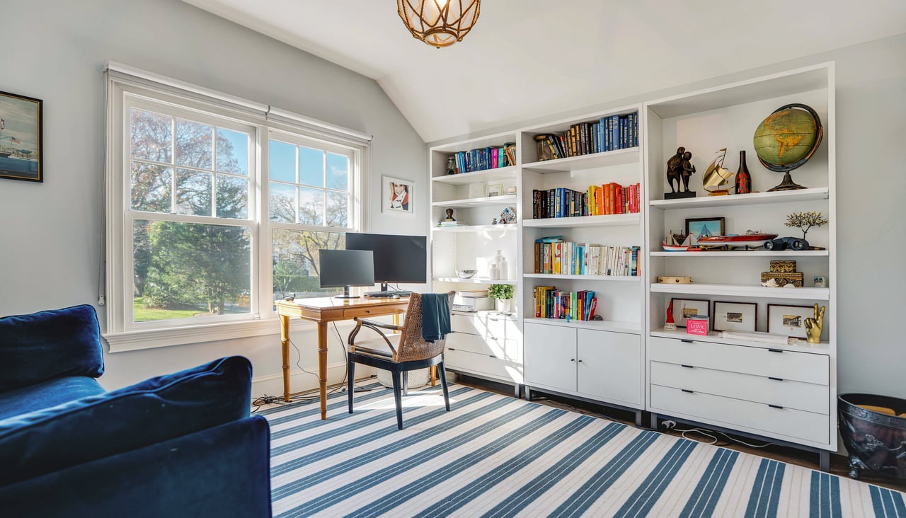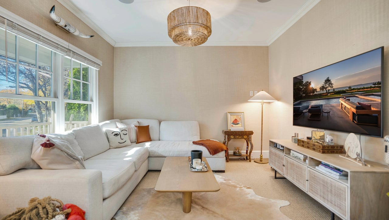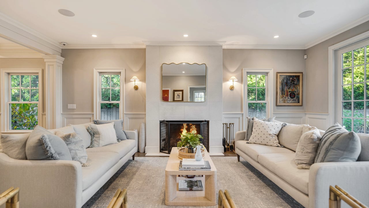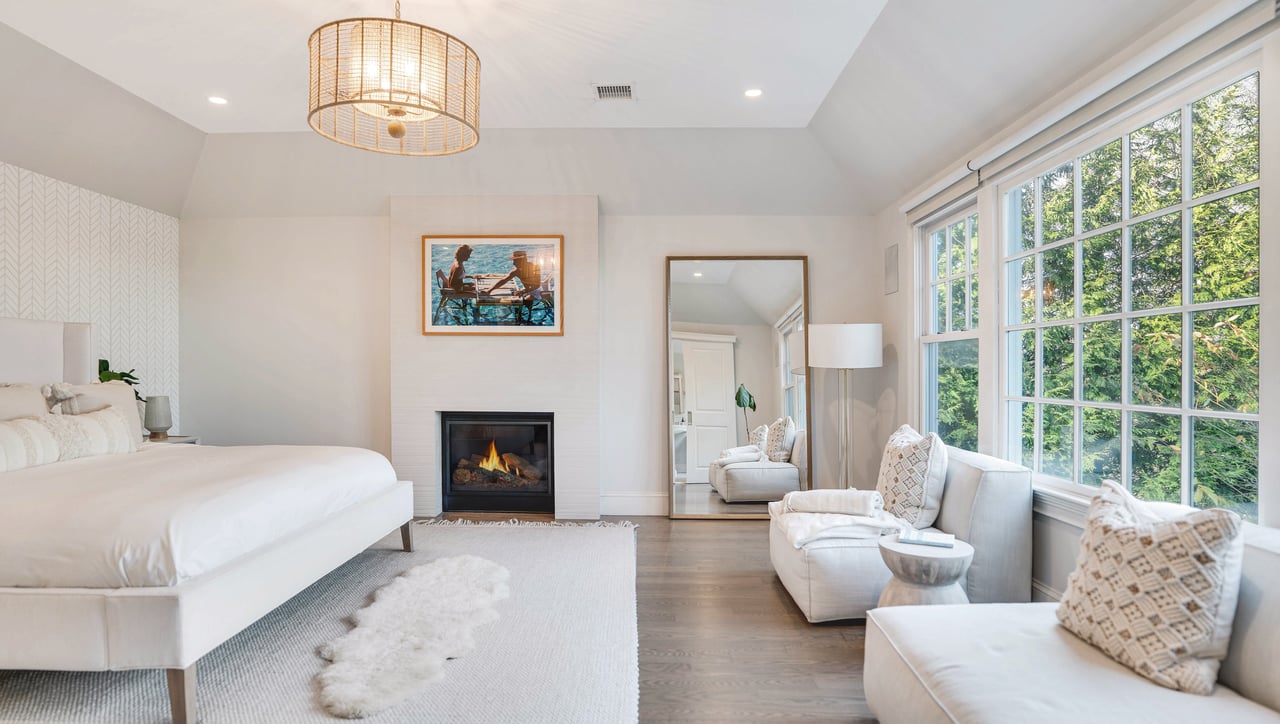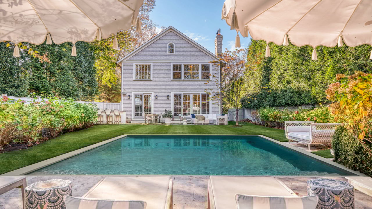 Perfectly positioned on the waterside of Sag Harbor Village's coveted Bay Street, mere moments from Havens Beach, the marina and Sag Harbor Yacht Club, this meticulously maintained four bedroom, five bath Nantucket-style shingled beach house blends timeless coastal charm and modern luxury in an exceedingly convenient Village location. Through the gracious front porch adorned by a standing seam copper accent roof, the full height entry foyer opens to sun-filled interiors and an adjacent sitting room. Anchored by a wood-burning fireplace, the open living room and dining area with coffered ceiling lead through French doors to the rear grounds with a heated, gunite pool overlooking Sag Harbor Bay. The eat-in kitchen, appointed with Wolf and Sub-Zero appliances, island seating, and a breakfast area offers effortless flow to the pool area with grill and al fresco dining, tucked amidst landscaped grounds by Nievera Williams Design, to create a lovely setting for entertaining. A full bath with marble shower completes the main level. Upstairs, the serene primary suite overlooks the rear gardens and features a gas fireplace, a custom California Closets walk-in, and a spa-caliber bath with a freestanding tub and steam shower. Three generous guest bedrooms and two full baths complement. The fully finished lower level includes bonus recreation space, a full bath, and a dedicated gym. A rare opportunity to own a turnkey Village beach house with refined finishes, smart-home amenities, effortless indoor-outdoor living, and car free access to the very best of Sag Harbor Village.