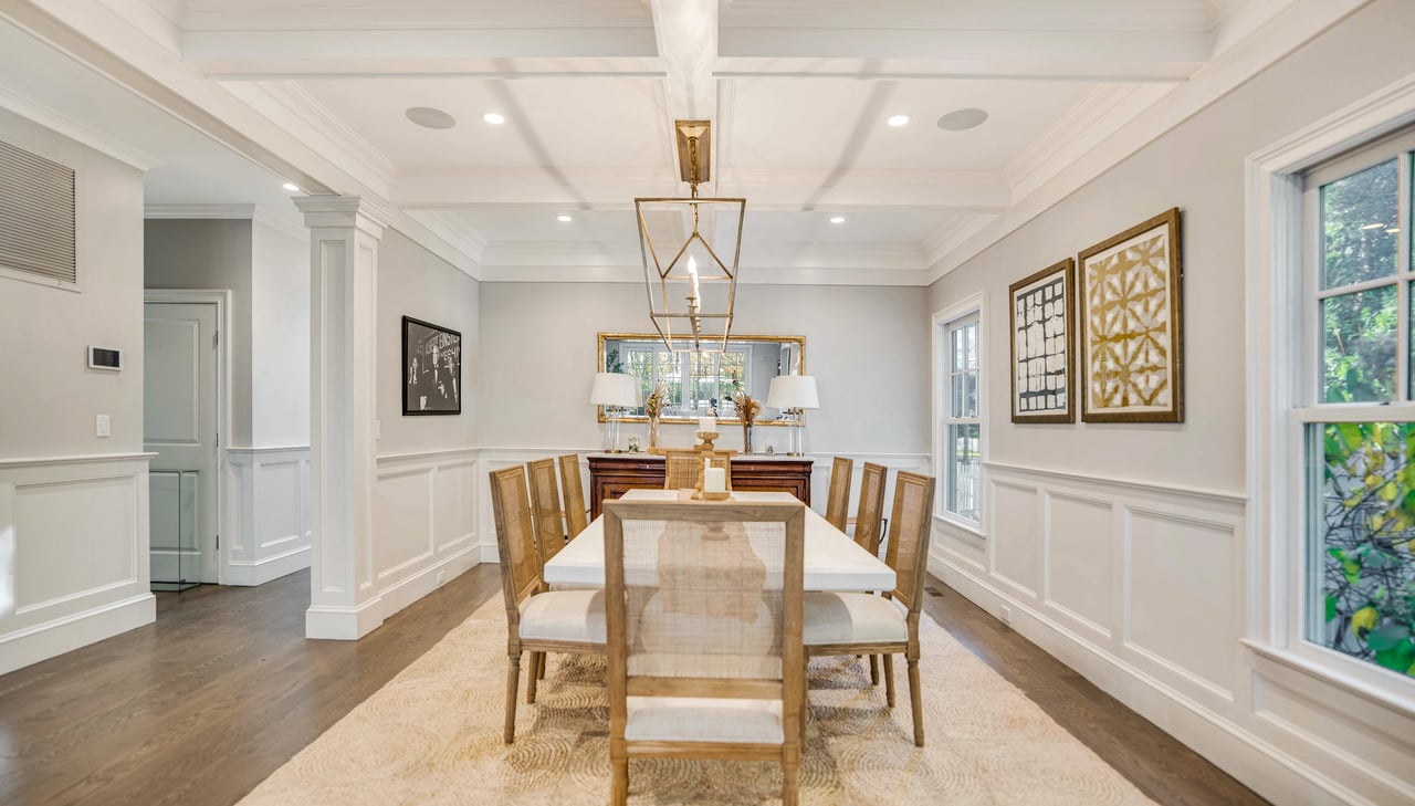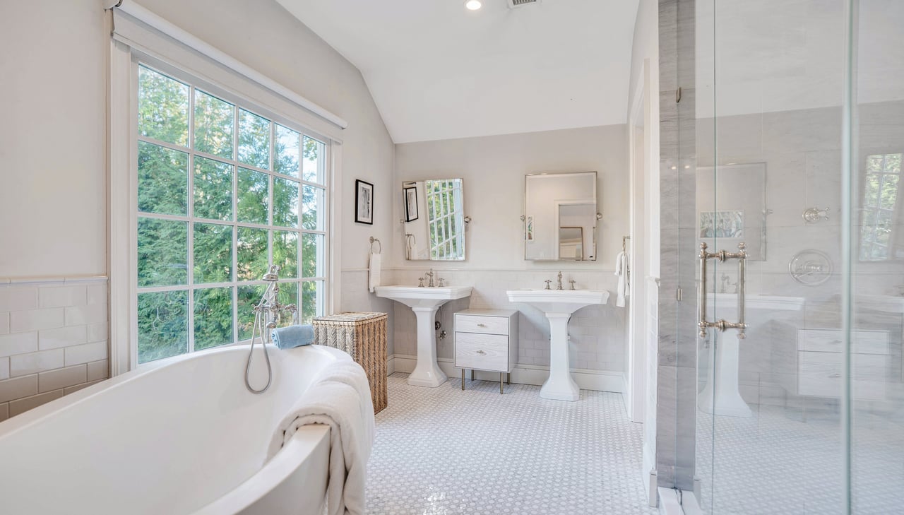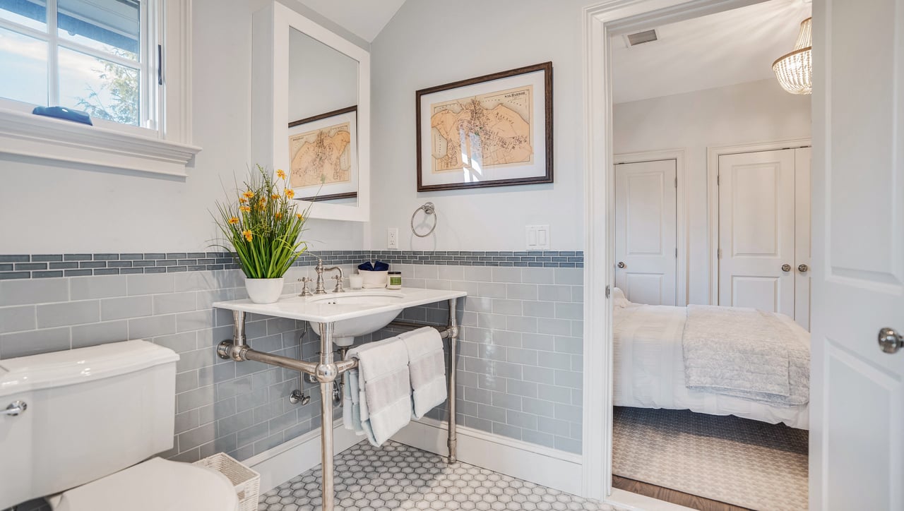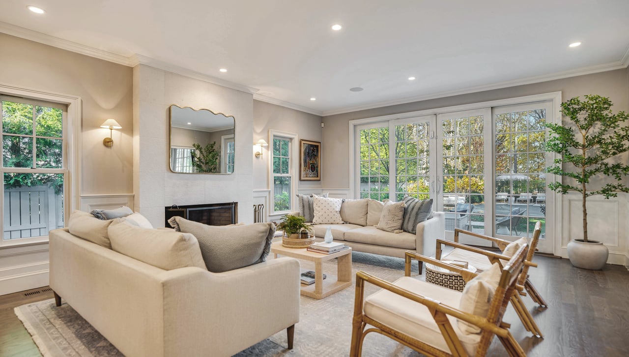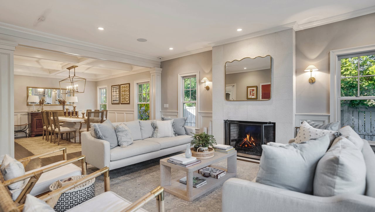 Perfectly positioned on the waterside of Sag Harbor Village's coveted Bay Street, mere moments from Havens Beach, the marina and Sag Harbor Yacht Club, this meticulously maintained four bedroom, five bath Nantucket-style shingled beach house blends timeless coastal charm and modern luxury in an exceedingly convenient Village location. Through the gracious front porch adorned by a standing seam copper accent roof, the full height entry foyer opens to sun-filled interiors and an adjacent sitting room. Anchored by a wood-burning fireplace, the open living room and dining area with coffered ceiling lead through French doors to the rear grounds with a heated, gunite pool overlooking Sag Harbor Bay. The eat-in kitchen, appointed with Wolf and Sub-Zero appliances, island seating, and a breakfast area offers effortless flow to the pool area with grill and al fresco dining, tucked amidst landscaped grounds by Nievera Williams Design, to create a lovely setting for entertaining. A full bath with marble shower completes the main level. Upstairs, the serene primary suite overlooks the rear gardens and features a gas fireplace, a custom California Closets walk-in, and a spa-caliber bath with a freestanding tub and steam shower. Three generous guest bedrooms and two full baths complement. The fully finished lower level includes bonus recreation space, a full bath, and a dedicated gym. A rare opportunity to own a turnkey Village beach house with refined finishes, smart-home amenities, effortless indoor-outdoor living, and car free access to the very best of Sag Harbor Village.